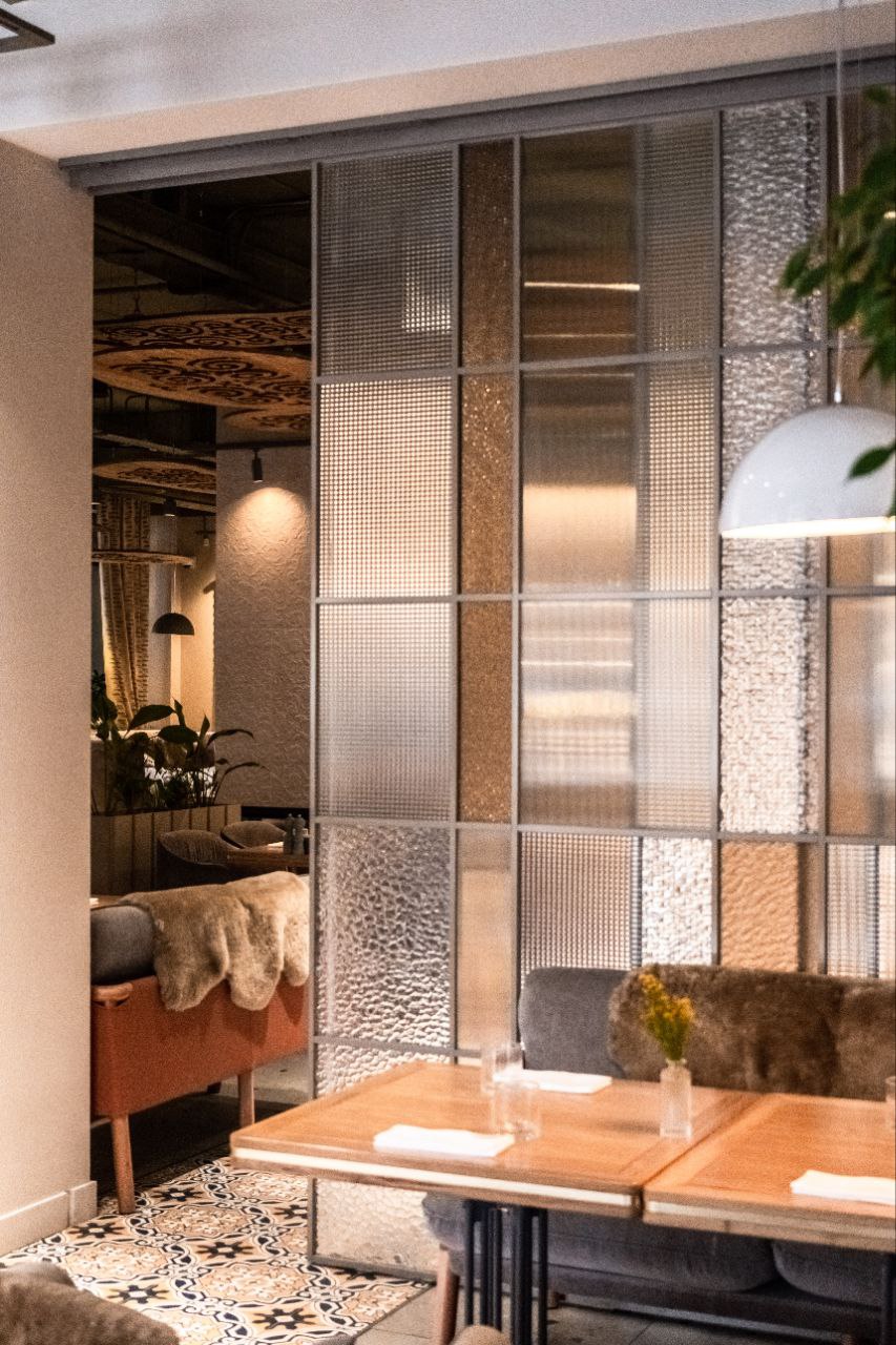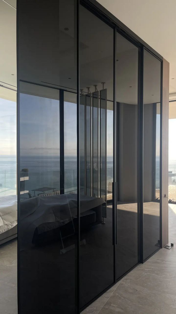 Уникальность данной системы в ультратонком обрамляющем профиле с заполнением из закаленного стекла толщиной до 8 мм. Стекло может быть в разном исполнении: матовым, прозрачным, с фотопечатью или с пескоструйной обработкой.